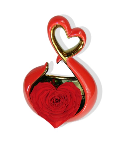 Rosa stabilizzata rossa a forma di cuore in elegante ceramica con dettagli dorati: un dono romantico e duraturo, perfetto per San Valentino per dire “ti amo” in modo unico