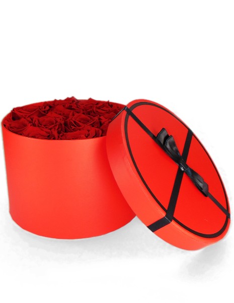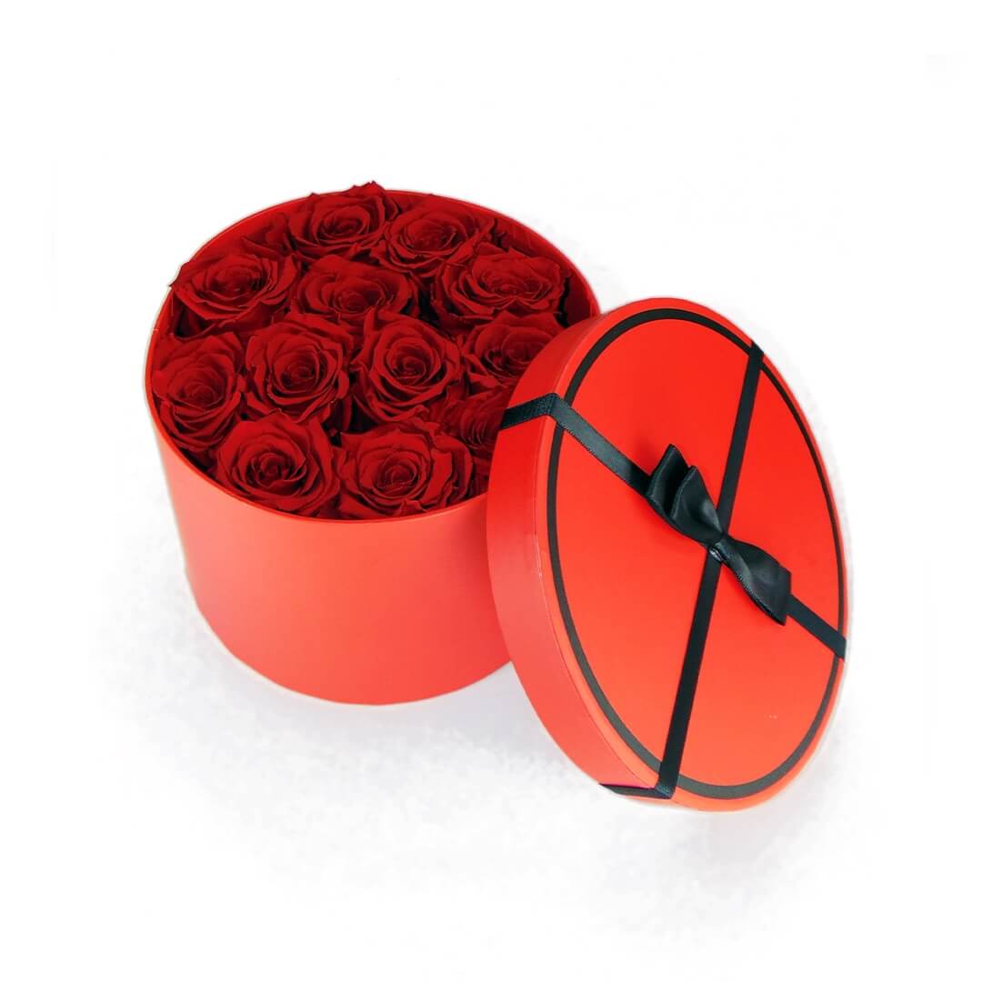 “Sussurro di rose”: cappelliera rossa con 12 rose rosse dal colore scarlatto, nastri neri e design elegante, un regalo per una passione intensa, ideale per San Valentino, per momenti speciali!